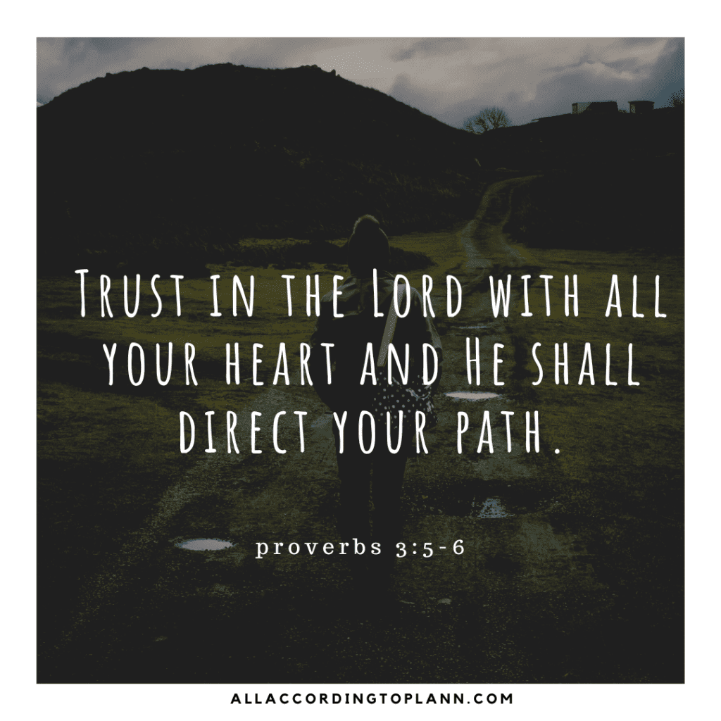 “Trust in the Lord with all thine heart; and lean not unto thine own understanding. In all thy ways acknowledge him, and he shall direct thy paths.” Proverbs 3:5-6